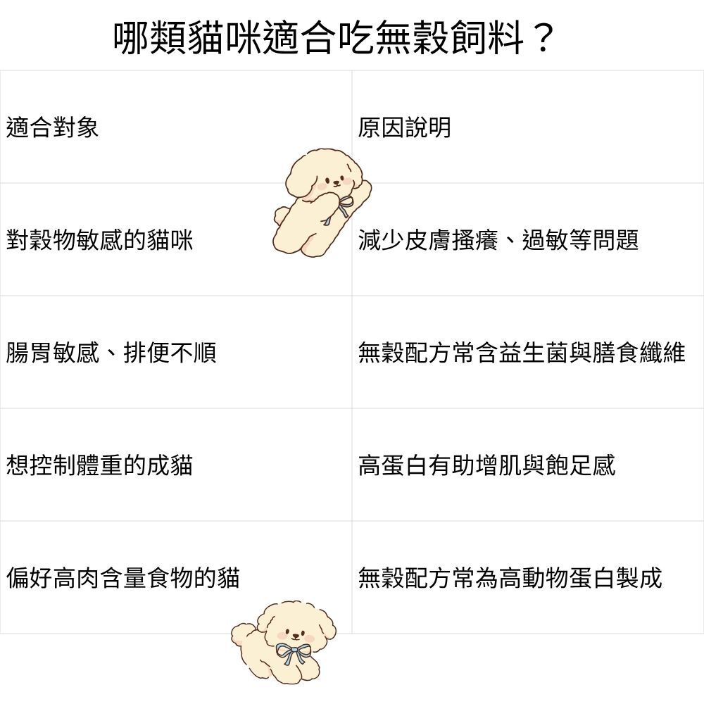 ✅ 無穀配方如添加豆類或馬鈴薯,請留意升糖風險與便便狀態變化