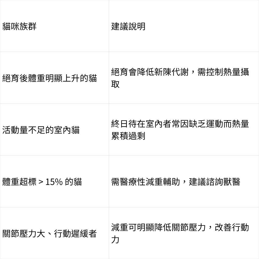 因此,挑選一款適合的「體重管理貓糧」,不只是控制卡路里,更是讓貓咪健康回到理想體態的關鍵。